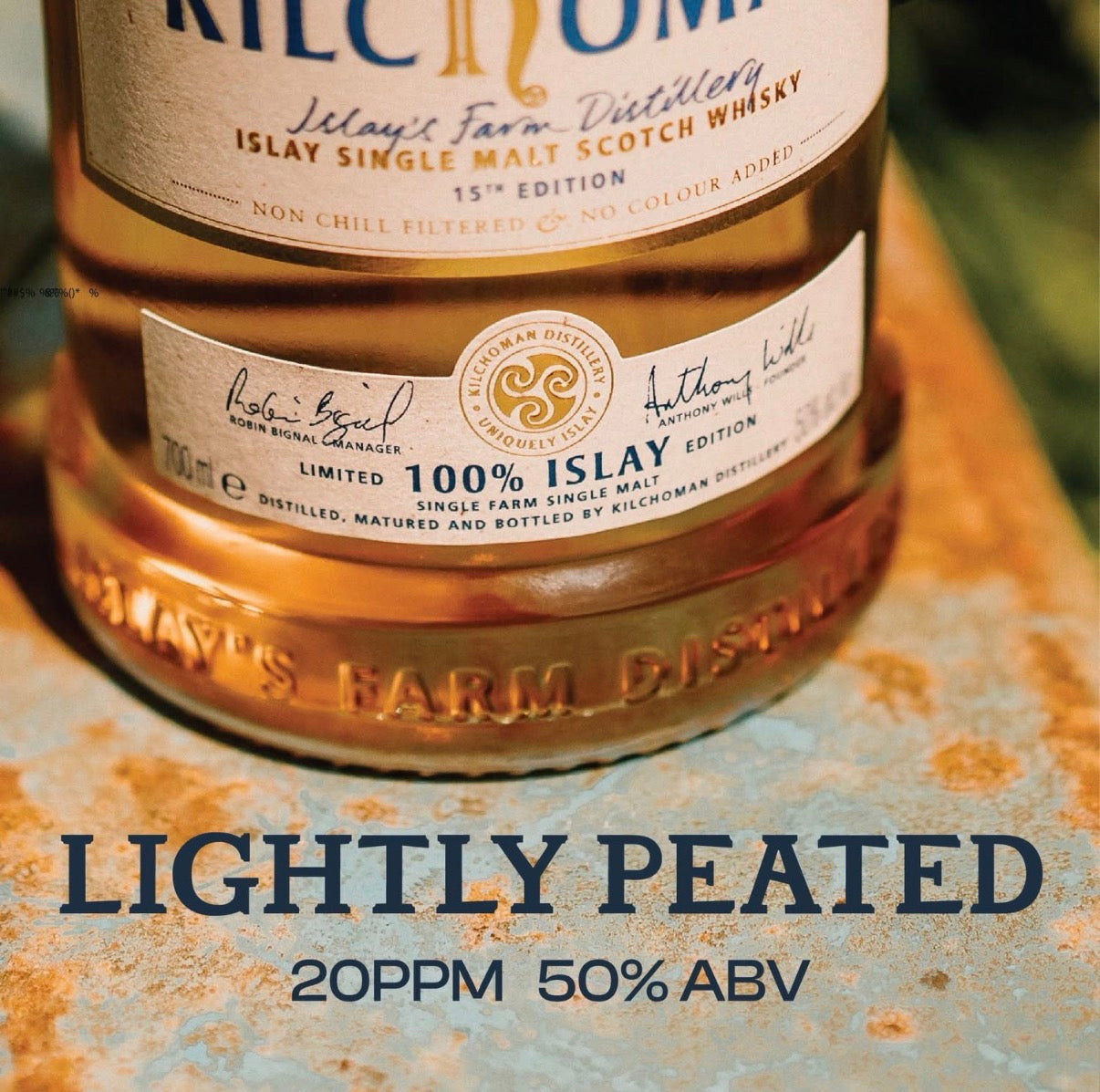 Gründer Anthony Wills hatte mit der damals ersten Neugründung einer Destillerie auf der Isle of Islay seit 124 Jahren ein visionäres Ziel verfolgt, das heute die Einzigartigkeit Kilchomans ausmacht. Umfasst von der rauen Schönheit der Insellandschaft mit ihren weißen weiten Sandstränden und mächtigen Steilklippen wurde die ursprüngliche Handwerkskunst des „farm distilling“ neu belebt. Dazu dienen die sehr fruchtbaren Böden rund um die Gemeinde Kilchoman für den eigenen Gerstenanbau und die Qualität des vom Atlantik geprägten, unvergleichlichen Islay-Torfs.